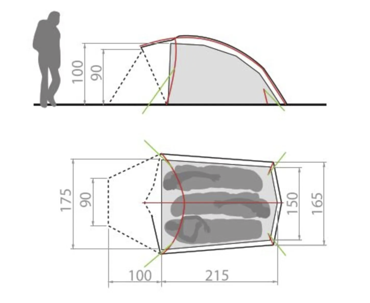 Das 3 Personen Trekkingzelt ist einfach zu bedienen und kann dank farblich markierter Teile und dank Kunststoffteilen zur Gestänge-Aufnahme rasch aufgebaut werden. Der kombinierte Aufbau von Innen- und Aussenzelt in einem Schritt beschleunigt das Aufbauen und hält das Innenzelt trocken, wenn es währenddessen regnet. Ausgestattet mit hochwertigen DAC-Stangen aus Aluminium, einer regengeschützten und stufenlos regulierbaren Luftöffnung, einer Wäscheleine im Innenzelt, Wicklern für Sturmleinen und zwei Taschen im Inneren, bietet das Zelt weitere sinnvolle Features.